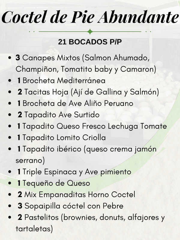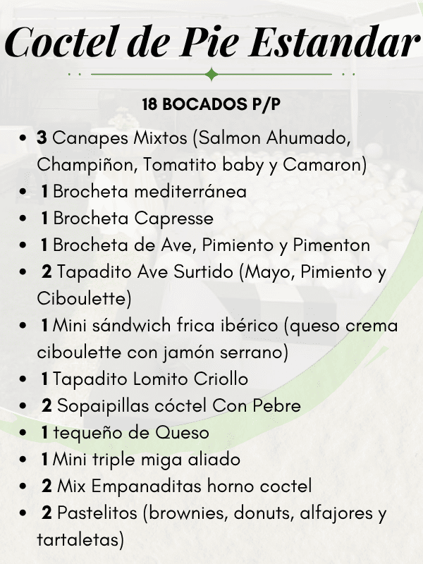 Nuestro servicio incluye: Atenci贸n, mesas de apoyo, manteles con arreglos florales y caminos, ceniceros, bandeja de garzones y c贸ctel.