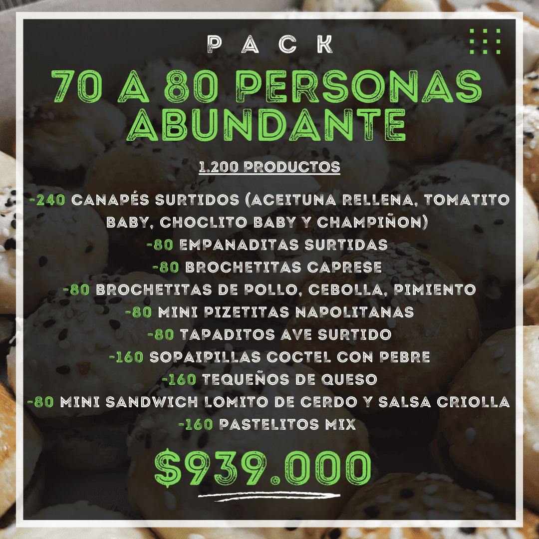 - 80 EMPANADITAS SURTIDAS (CARNE, POLLO, CHOCLO, NAPOLITANA, ACEITUNA Y/O CHAMPIÑON)